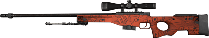 AWPのオレンジスキンの一つであるBOOMは、コミックスタイルのデザインが特徴です。鮮やかなオレンジ色のボディに、ドット模様と「BOOM!」「BLAM!」「POW!」「CRACK!」というセリフが描かれています。バレル、スコープ、および銃床の後部は塗装されておらず、コミック風の要素とバランスの取れたコントラストを作り出しています