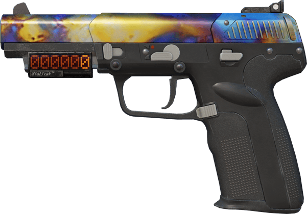 Five-SeveN (StatTrak™) | Case Hardened (ใหม่จากโรงงาน) คือสกินปืนพกคลาสสิกแบบขึ้นอยู่กับแพตเทิร์น เปิดตัวเมื่อวันที่ 8 พฤศจิกายน 2013 ปล่อยพร้อมอัปเดต “The Arms Deal 2” เป็นส่วนหนึ่งของ The Arms Deal 2 Collection และพบได้ใน CS:GO Weapon Case 2 โดยใช้สไตล์ฟินิช ปาตินา กับเคลือบ Case Hardened: สไลด์ถูกทำสีแบบ case-hardened ด้วยกระบวนการถ่านอุณหภูมิสูง ทำให้เกิดคราบสีปื้น ๆ โทนฟ้า ม่วง และทองบนโลหะดิบ เพราะหน้าตาขึ้นอยู่กับค่าแพตเทิร์น บางชิ้นจึงมีสีน้ำเงินมากกว่ามาก และเลย์เอาต์ “Blue Gem” จะยิ่งเป็นที่ตามหา ในสภาพ ใหม่จากโรงงาน ดูเนี๊ยบ: แทบไม่มีรอยถลอกหรือรอยขีด ทำให้ความเงาเมทัลลิกยังสว่างและสีสันยังคมชัด สำหรับ StatTrak™ สกินจะมีเคาน์เตอร์ดิจิทัลในตัวที่ติดตั้งบนอาวุธ ซึ่งจะนับจำนวนศัตรูที่ถูกกำจัดไปแล้ว